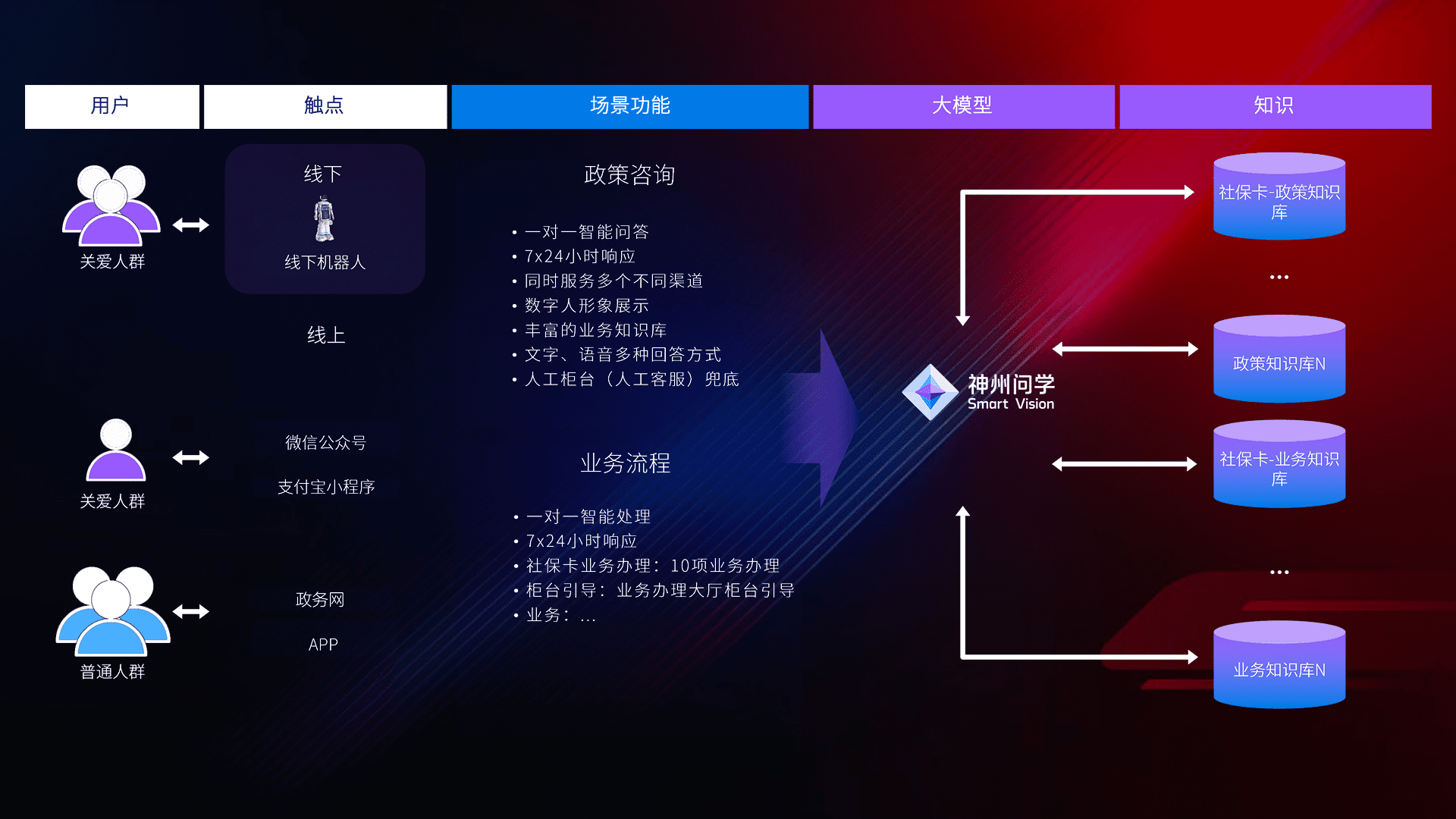 在服务大厅部署客服机器人,,在线上应用和小程序配置客服数字人,,724小时为群众解答常规问题,,客服机器人无法处理的,,,,转现场人工处理。。。