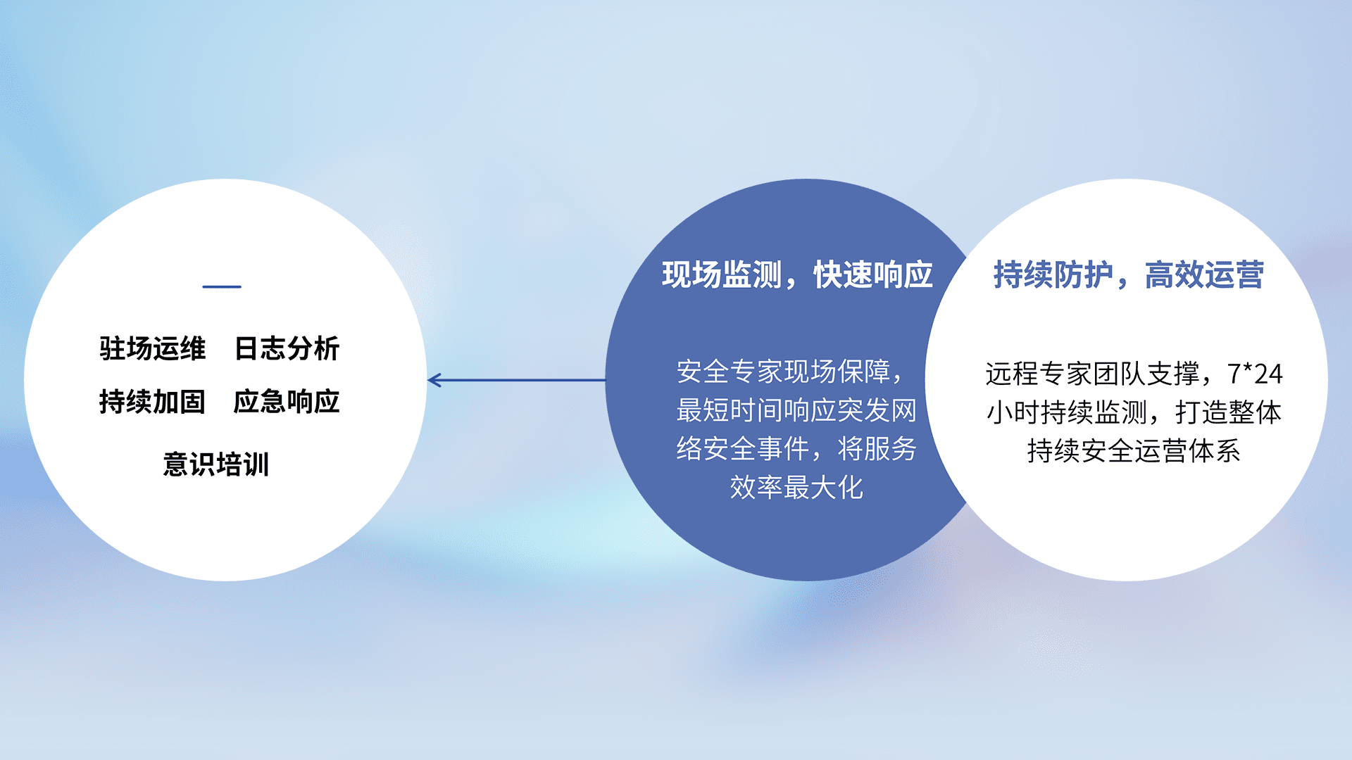 7X24小时持续监测安全事件,保持安全策略有效性,降低资产脆弱性风险,,,,精准拦截黑客攻击,,,,减少被黑客利用的机会,,,,第一时间遏制,,,降低损失。。。。